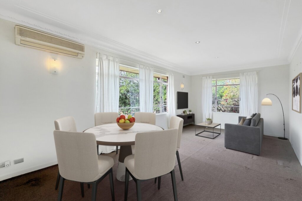 Conveniently located just moments from Cammeray Village, you'll enjoy a selection of cafes, restaurants, shops, and transport options, all within walking distance. Plus, you're just a short drive to the CBD, with harborside walks and parks nearby for your leisure. Featuring high ceilings, floorboards throughout, and wide full-length windows, the expansive lounge and dining area flows seamlessly to an updated kitchen.